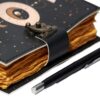 vintage handmade leather journal. Crafted with genuine leather, it radiates authenticity and charm, perfect for those who appreciate classic craftsmanship. The premium antique lock closure adds a touch of elegance and security, ensuring your thoughts and memories are safeguarded within its pages. Inside, you’ll discover 200 brown handmade pages, providing ample space for your musings, sketches, and stories to unfold. Whether it’s for journaling, sketching, or planning, this versatile journal is a timeless companion for your creative endeavors. Treat yourself or a loved one to this exquisite piece, a celebration of tradition and creativity