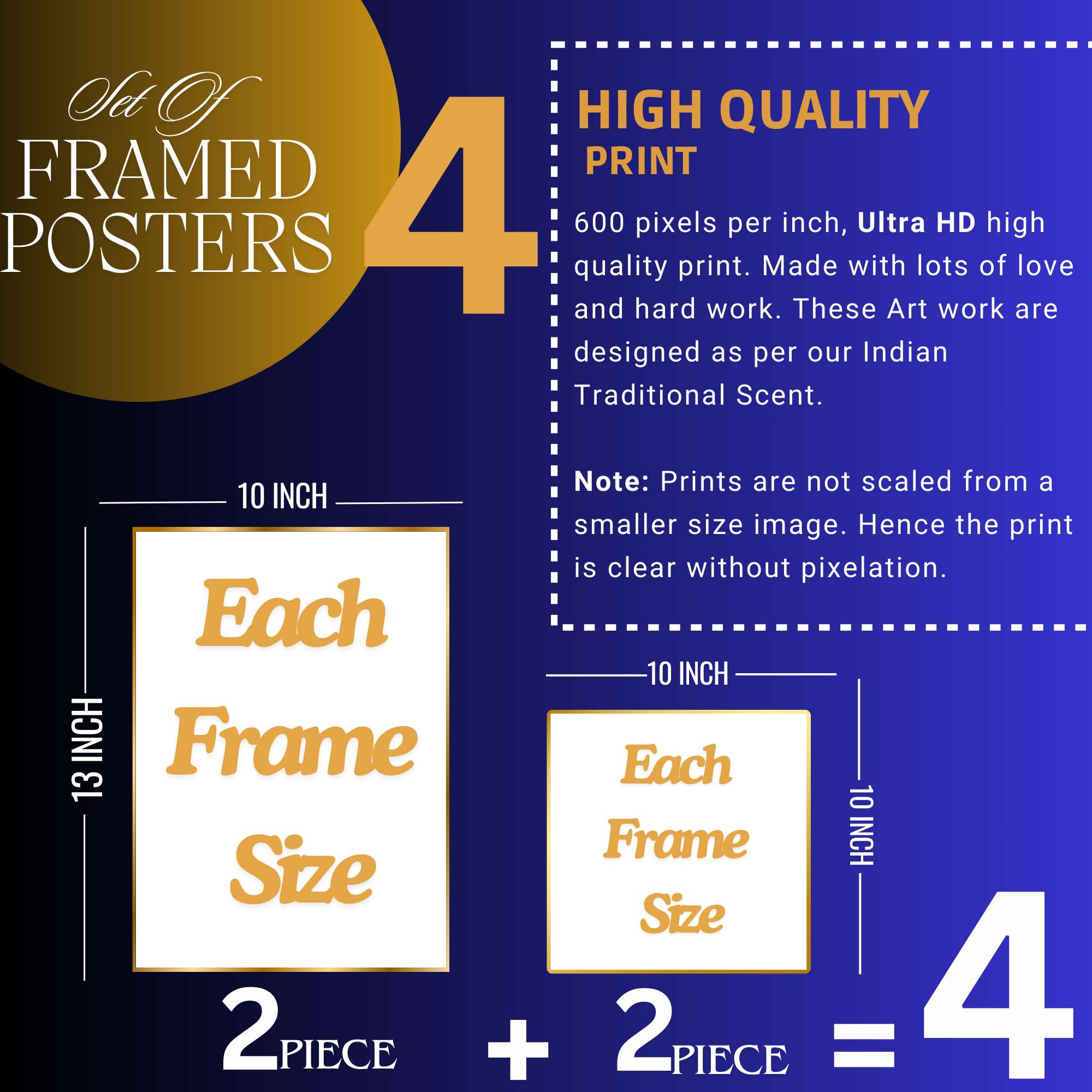 Set of Four Wall Paintings for Wall Dacoration Golden Framed Wall Paintings for Living Room & Bedroom Wall Art for Home Decoration & Office Wall Décor (13×10 inch CH-GD4-13)