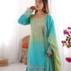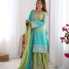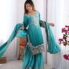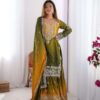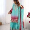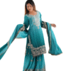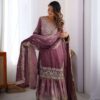 Women’s Chinon Silk Sequence With Rivet Moti Work Straight Kurta With Sharara and Dupatta Set