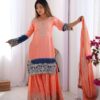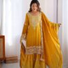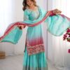 Be the first to review “Women’s Chinon Silk Sequence With Rivet Moti Work Straight Kurta With Sharara and Dupatta Set” Cancel reply