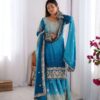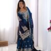 Women’s Silk Heavy Embroidery Sequence Work Long Anarkali Kurti With Pant and Dupatta Set