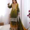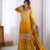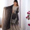Women’s Chinon Silk Sequence Embroidery Work Straight Kurti With Sharara Suit and Dupatta Set