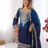 Women’s Chinon Silk with Cotton Thread Embroidery Straight Kurti With Pant and Dupatta set