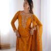 Women’s Silk Heavy Embroidery Sequence Work Long Anarkali Kurti With Pant and Dupatta Set