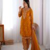 Women’s Silk Heavy Embroidery Sequence Work Top-Bottom Straight Kurti With Pant and Dupatta set