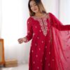 Women’s Georgette Embroidery Straight Kurti with Pant And Dupatta Set